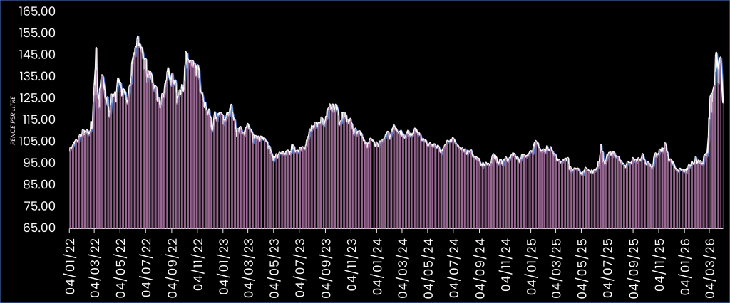 The traded price is a guide to the day’s traded diesel price converted into pence per litre (traded benchmark, e.g. PLATTS+ fuel duty), without the delivery charges or supplier mark-ups applied by your local, physical fuel supplier.